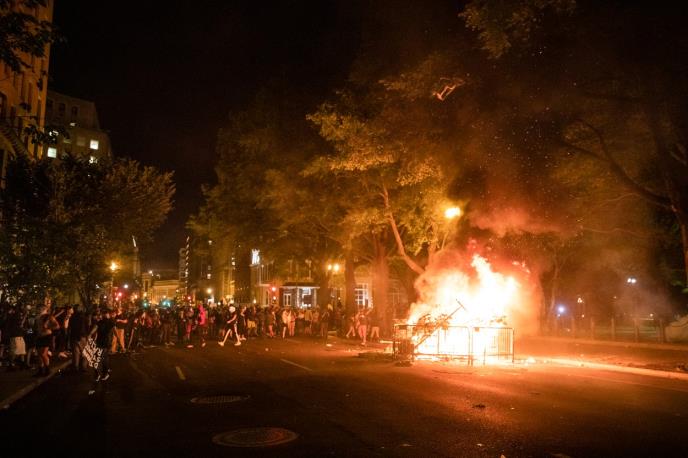 Demonstranti su na ulicama Vašingtona nagomilali plastične barikade i saobraćajne znake i zapalili veliku vatru u koju su pojedini ubacili američku zastavu sa obližnje zgrade.