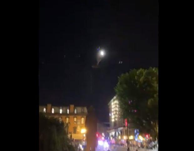 Dok su demonstranti išli ka Vašingtonskoj kineskoj četvrti, američki vojni helikopter "lakota" leteo je veoma nisko, podižući prašinu, a lomila su se i stabla drveća.