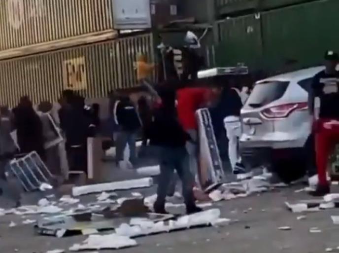 Na snimku objavljenom u utorak vide se lopovi koji se penju na spori teretni voz i uzimaju velike kutije televizora.