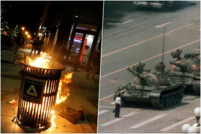 Kritikujući političare koji pozivaju na vojnu intervenciju u američkim gradovima u kojima su u toku protesti zbog smrti Afroamerikanca Džordža Flojda, autorka podseća da je sadašnji američki predsednik Donald Tramp, u intervjuu za magazin "Plejboj", datom godinu dana posle krvavih protesta na Tjenanmenu, veličao snagu kojom su kineske vlasti ugušile demonstracije, i iz tog primera naučio lekcije o moći.