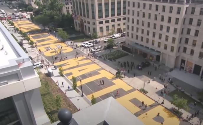 Niz prometnu ulicu u Vašingtonu je ogromnim, žutim slovima iscrtana poruka Black lives matter (Životi crnaca su važni).