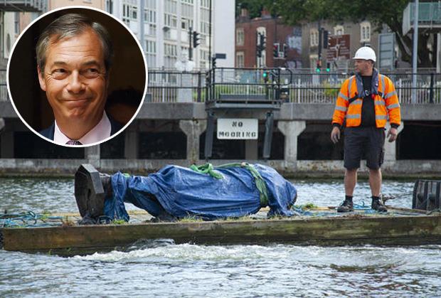 Upitan o antirasističkim demonstrantima koji su u nedelju isčupali a zatim bacili u reku u Bristolu statuu Edvarda Kolstona, trgovca afričkim robovima koji je živeo u 17. veku, Faraž je te akcije poredio sa talibanima koji su 2001. digli u vazduh stare statue Bude u Afganistanu.