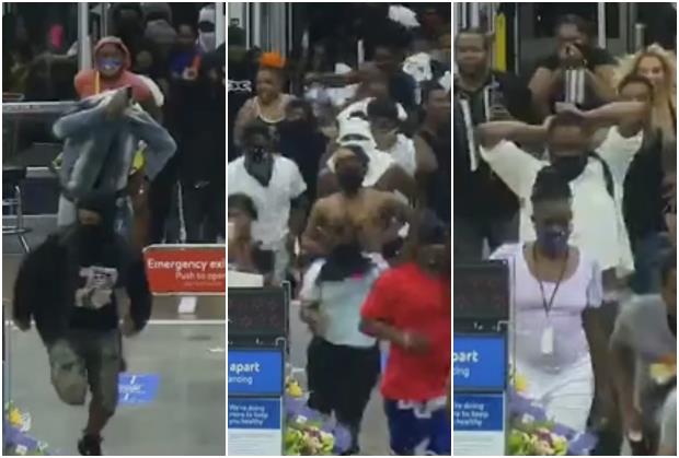 Video snimak iz Valmarta koji je objavila agencija za sprovođenje zakona pokazuje ogromnu gomilu ljudi kako radosno probijaju svoj put do prodavnice, a zatim kreću sa krađom.