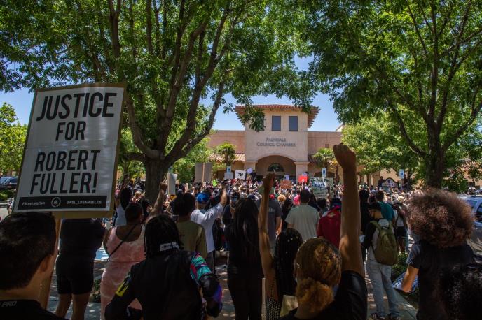 Demonstranti su u subotu minutom ćutanja odali počast Robertu Fuleru u istom parku u kojem je nađen kako visi s drveta. Među njima je bila i Fulerova sestra Diamond Aleksander koja je rekla da prvotni nalazi službenika da se radi o samoubistvu nemaju smisla.