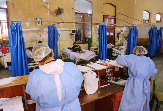 Medicinsko osoblje radi u smenama od 12-18 sati, noseći potpunu zaštitnu opremu pri visokim dnevnim temepraturama. Ni ovde nema dovoljno kreveta, a očekuje se da će preživeti samo jedan od 10 pacijenata u kritičnom stanju.