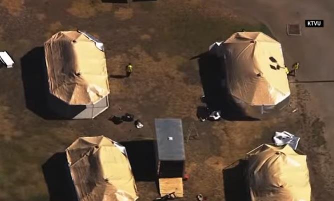 Na snimcima iz vazduha vidi se devet šatora na bejzbol terenu koji su postavljeni za smeštaj i lečenje zatvorenika zaraženih koronom i ovo rešenje omogućava i fizičko dostanciranje za razliku od unutrašnjosti prenatrpanog zatvora.