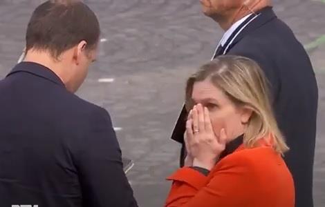 Kako se vidi na snimku, ona je u potpunoj panici držala obe ruke preko usta i nosa dok neko iz protokola nije došao sa novom maskom.