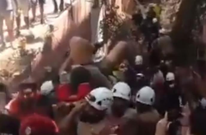 On je pronađen živ ispod ruševina, a spasioci su ga izvukli na nosilima. Njemu je odmah ukazana pomoć.