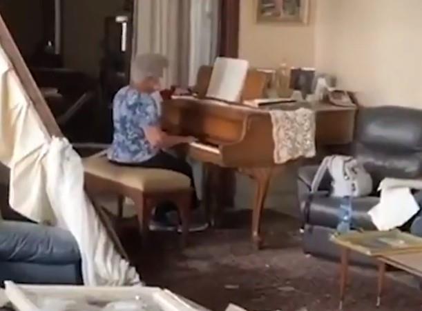 Ali nekoliko minuta svet je zastao i stvari su izgledale mirno, dok je 79-godišnjakinja svirala "Auld Lang Sine" na jedinom predmetu koji je naizgled ostao netaknut - svom voljenom klaviru.