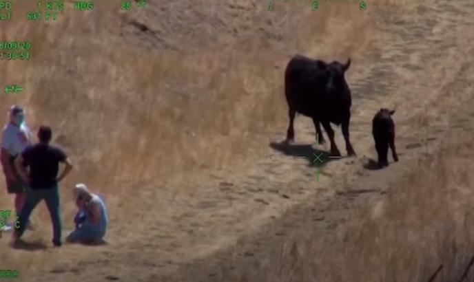 Policija u Kaliforniji morala je da interveniše helikopterom zbog neprilika u koje je upao stariji par kada ih je napala besna krava sa teletom.