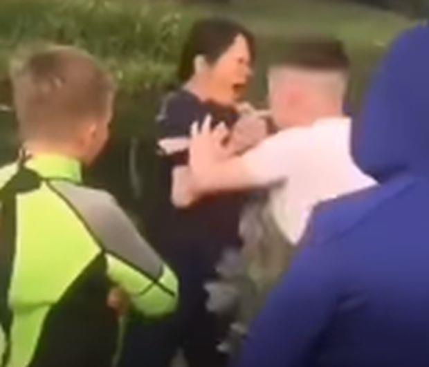 Video snimak koji kruži po društvenim medijima, prikazuje dva dečaka kako guraju ženu u kanal, javlja BBC.