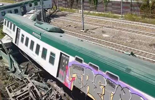 Povređen je mašinovođa voza koji je saobraćao na liniji Milano - jezero Komo i koji je prolazio kroz bogatu industrijsku oblast Brianca, prenosi Rojters.