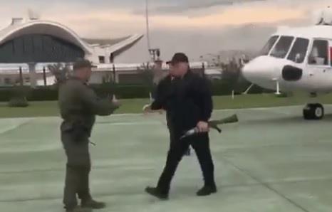 Objavljen je i snimak na kojem se vidi kako Lukašenko izlazi iz helikoptera sa automatom u rukama, a u njegovoj pratnj bili su pripadnici vojske, preneo je Sputnjik.