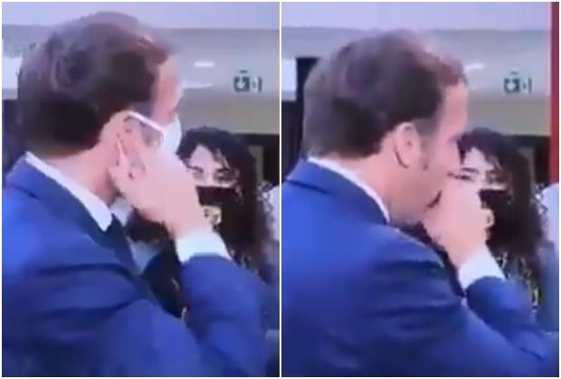 Makron je skinuo masku kada je osetio blagi nalet kašlja tokom govora na fakultetu u Klermon-Feranu. Dok se publika nervozno kikotala, prihvatio je čašu vode pomoćnika koji mu je bio na dohvat ruke, objašnjavajući: „Održavamo distancu, ali gušim se.“