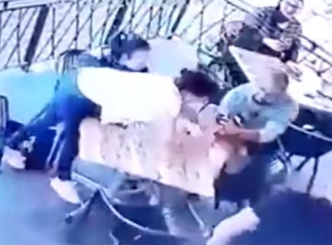 Kako pokazuje snimak nadzorne kamere, dve žene su sa devojčicom (4) sedele za stolom kada se odjednom pojavio muškarac koji je preskočio ogradu i zgrabio dete za vrat.