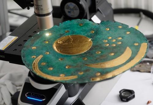 Stručnjaci su zaključili da disk obima trideset dva centimetra, presvučen plavkasto-zelenom patinom sa zlatnim umecima u obliku sunca, meseca i zvezda, predstavlja religijski predmet, ali i sofisticirani astronomski sat.