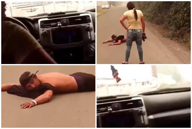 "Što radiš na mom posedu? Jesi li išta zapalio? - viče Kat Cast dok u jednoj ruci steže pištolj, prema snimci koju je objavila na Fejsbuku.