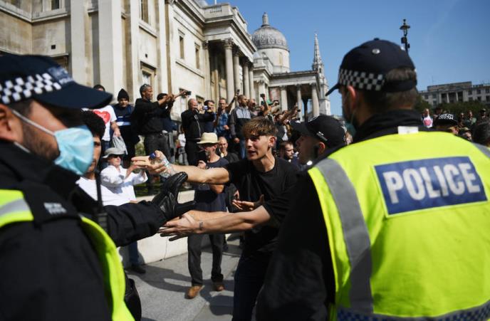 Policija u Londonu sukobila se danas sa učesnicima protesta protiv restriktivnih mera, koje imaju za cilj da obuzdaju širenje korona virusa.