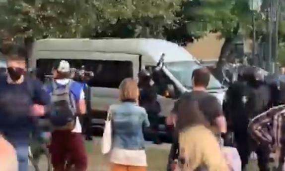 Demonstranti počinju da beže, čuje se pucanj nalik onom iz pumperice.