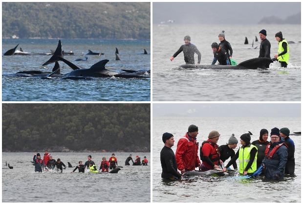 KOD TASMANIJE SE NASUKALO 270 KITOVA: Spasioci očajnički pokušavaju da spasu preživele životinje (FOTO)
