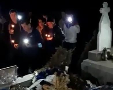 "Otišli smo na groblje da mu čestitamo", navela je jedna meštanka koja je na Fejsbuku prenela fotografiju na kojoj nekoliko desetina osoba drže upaljene sveće.