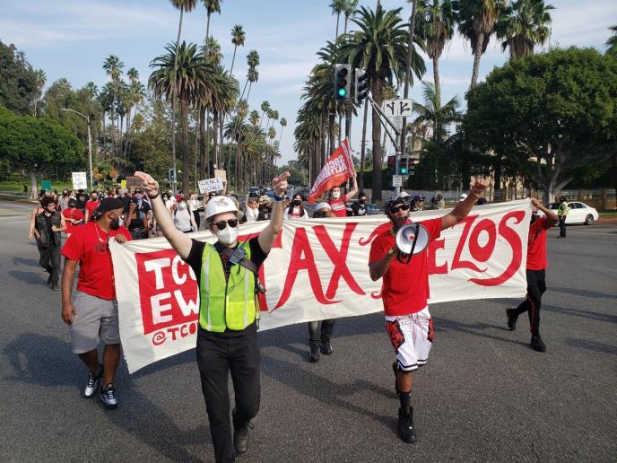 Stotinak bivših radnika i aktivista došlo je pred raskošno imanje koje je Bezos kupio ranije ove godine od poznatog osnivača diskografske kuće Gefen Rekords i filmskog studija DreamWorks Dejvida Gefena.