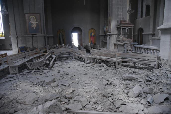 Crkva Svetog Hrista Spasitelja, poznata kao Gazančecoc, obeležje Šušija, gotovo je uništena u jučerašnjem napadu. Građena je od 1868. do 1887. i sedište je eparhije Nagorno-Karabaha Jermenske apostolske crkve i odolevala je svim sukobima u Karabahu u poslednje tri decenije.