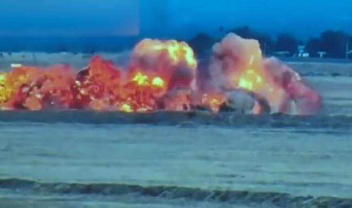 Na snimku se vidi kako avion zahvaćen plamenom pada na zemlju. U trenutku udara ništa se nije videlo od gustog crnog dima.
