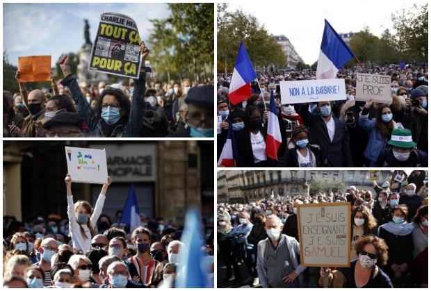 Više hiljada ljudi izašlo je danas na ulice Francuske u znak podrške nastavnicima i u cilju odbrane slobode izražavanja nakon ubistva nastavnika istorije Samijela Patija, koji je u petak ubijen odsecanjem glave, pošto je sa svojim učenicima razgovarao o karikaturama proroka Muhameda.