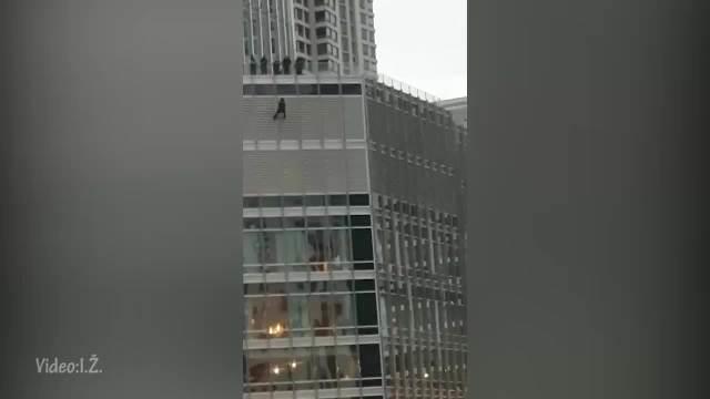Muškarac, u 20-im godinama i navodno član pokreta "Životi crnaca su važni", popeo se na kulu Čikago Tramp oko 17.30 i visio sa užeta u nedelju uveče i tamo bio satima dok je policija pokušavala da ga nagovori da siđe, prenosi Njujork post. Na kraju su uspeli da ga spuste na zemlju.