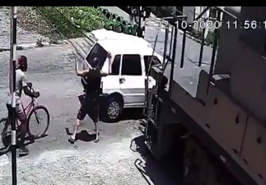 VOZ JE UNIŠTIO KOLA NA PRUŽNOM PRELAZU: Suvozač je bezuspešno pokušao da pomogne Brazilki koja je bila za volanom (VIDEO)
