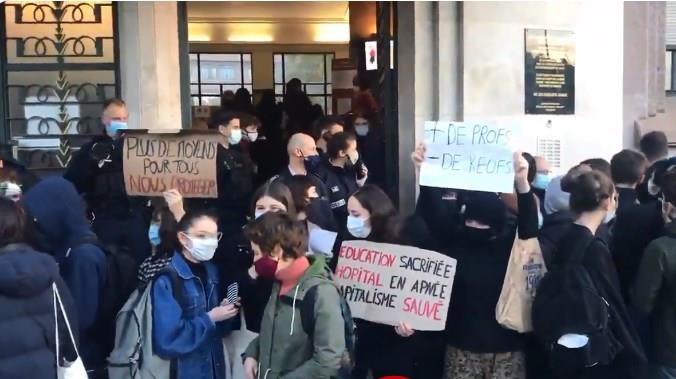 Interventna policija upotrebila je biber sprej kako bi rasterala studente koji su danas blokirali srednju školu Kolber u Parizu, u znak protesta zbog neadekvatnih mera zaštite protiv Kovid-19.