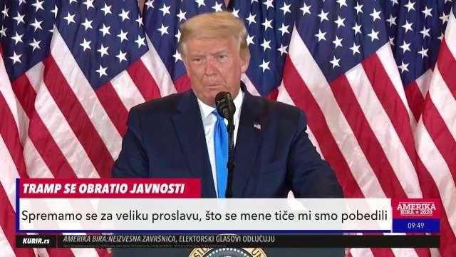 "Iskreno, pobedili smo, iako nisu prebrojani svi glasovi. Milioni ljudi su glasali za nas i hvala američkom narodu na velikoj podršci. Ali jedna veoma tužna grupa ljudi pokušava da ih liši tog prava, što nećemo dozvoliti. Spremali smo se za veliku proslavu, a odjednom je sve otkazano", rekao je Tramp.