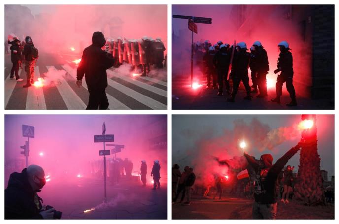 Oni su policajce gađali petardama, kamenicama, flašama iz mase učesnika Marša nezavisnosti koji poljski radikali i nacionalisti tradicionalno organizuju na državni praznik 11. novembra u Varšavi.