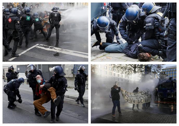 Nemačka policija upotrebila je vodeni top kako bi rasterala učesnike protesta protiv antiepidemijskih mera održanog u Frankfurtu.