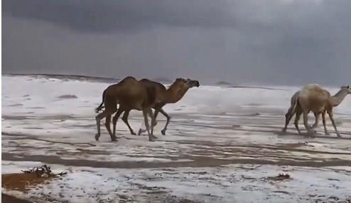 Kamile i sneg nisu kombinacija koju bi mnogi očekivali, ali video koji se deli na društvenim mrežama iz Saudijske Arabije pokazuje da su one veoma prilagodljive