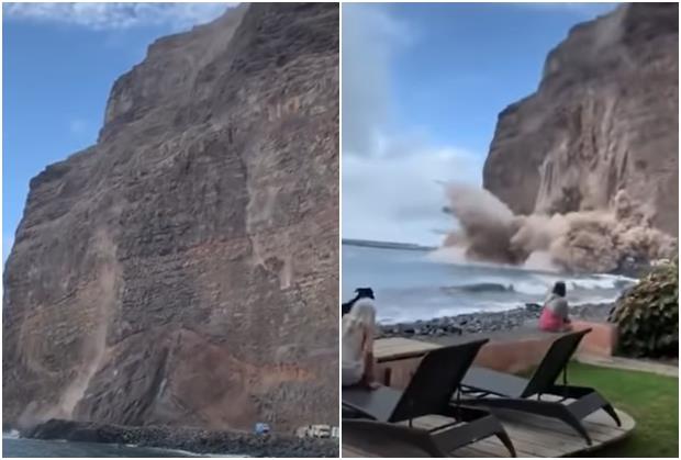 Dramatičan trenutak snimljen je u nedelju na Kanarima gde se ogromni deo stene srušio na plažu u blizini turista.