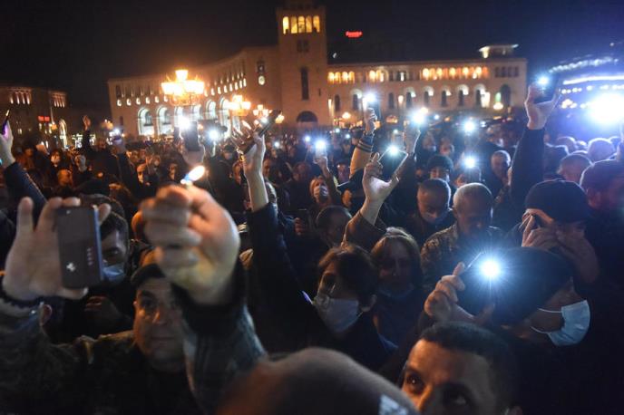 Drugi skup održan je na oko 300 metara udaljenosti, na kojem je prisustvovalo više od hiljadu građana Jerevana koji žele da premijer podnese ostavku. Oni smatraju da je Pašinjan, koji je nedavno potpisao trilateralni sporazum o prekidu vatre u Nagorno-Karabahu, ustupio jermenske teritorije Azerbejdžan