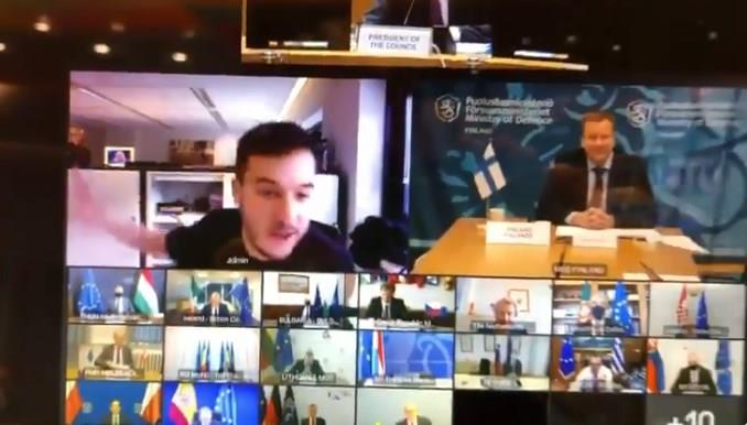Direktor Transaprensi Internešnel EU Mihael van Hulten objavio je na Tviteru snimak incidenta uz komentar: "Ono Ferlanovo hakovanje sastanka ministara odbrane EU? Evo kako je izgledalo. Vrhunska komedija".