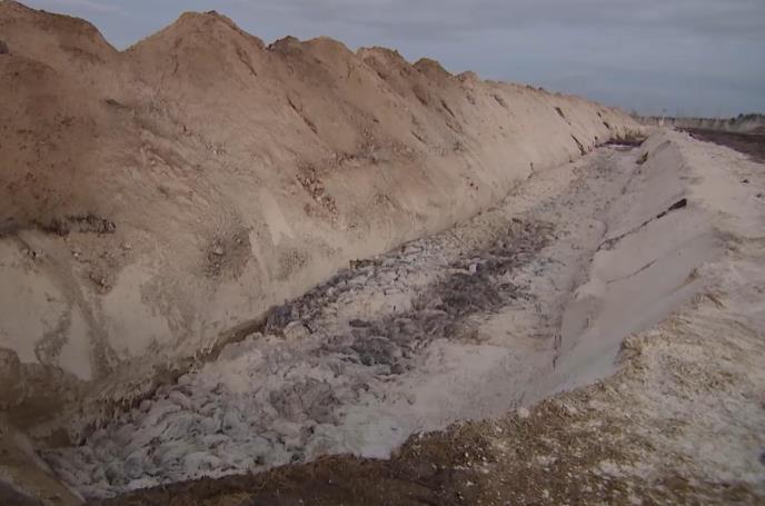 Na televiziji je prikazan zastrašujući video nepregledne gomile životinjskih leševa na vojnom poligonu Holstebro na severozapadu zemlje, gde su ranije bile zakopane.