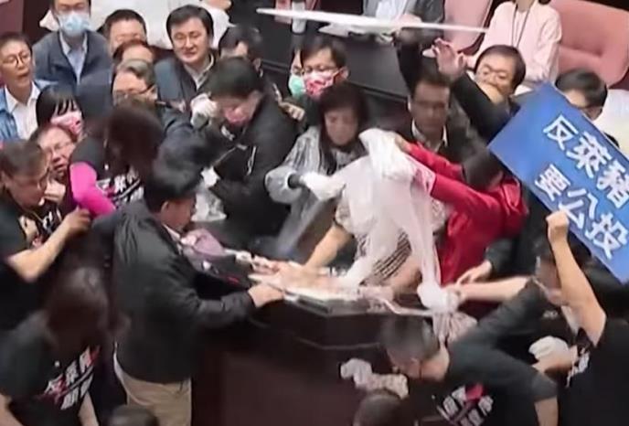 Totalni haos nastao je u tajvanskom parlamentu kada su poslanici vodeće opozicione stranke Kuomintang (KMT) počeli da bacaju svinjske iznutrice tokom diskusije o ukidanju zabrane uvoza svinjetine iz SAD. Došlo je i do fizičkog obračuna među poslanicima.
