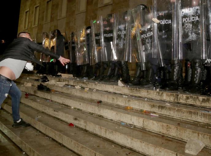 Demonstranti, koji su prekršili zabranu okupljanja više od 10 ljudi, ubrzo su se sukobili sa policijom. Bacali su kamenice na policajce i na zgrade Vlade, Ministarstva unutrašnjih poslova i Skupštine Tirane.