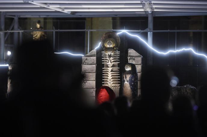 Monumentalne keramičke jaslice koje je Vatikan povodom Božića postavio na Trgu Svetog Petra prikazuju dete Isusa, Josipa i Mariju, mudrace s Istoka i lik sličan astronautu.