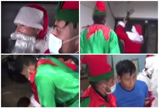 Peruanski policajci, prerušeni u Deda mraza i vilenjaka, upali su u kuću u Limi i uhapsili dilera kokaina, u sklopu velike operacije u borbi protiv narkotika.
