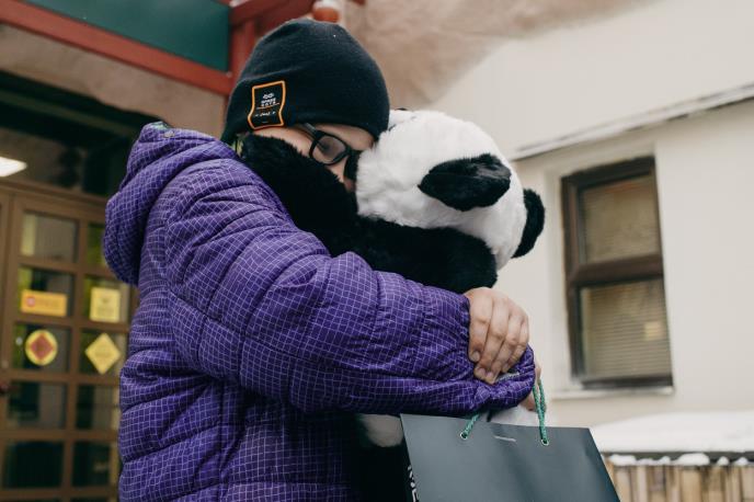 "Uzbuđen sam i srećan. Mnogo volim pande – one su velike i mekane“, rekao je dečak.