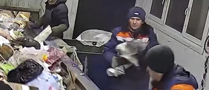 Snimci nadzorne kamere u fabrici za razvrstavanje smeća, u Uljanovsku, gradu oko 700 km jugoistočno od Moskve, pokazale su kako radnik Mihail Tukaš s pokretne trake uzima plastičnu kesu i u njoj pronalazi jednog crno-belog mačka.