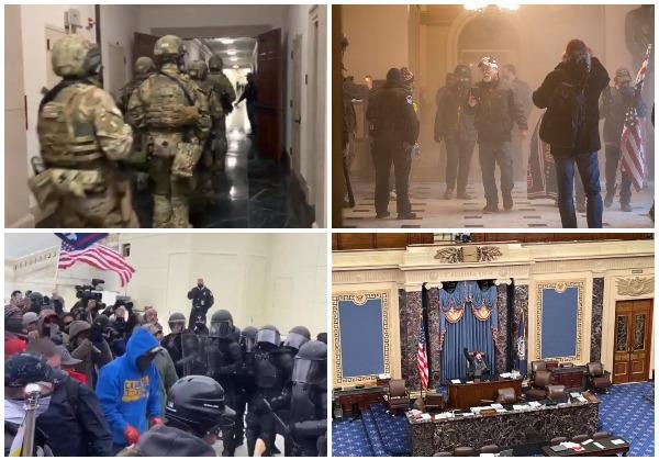 * Pre ulaska u Kapitol, bilo je velikih sukoba sa policijom; vlasti su u Vašingtonu zbog nereda proglasile policijski čas