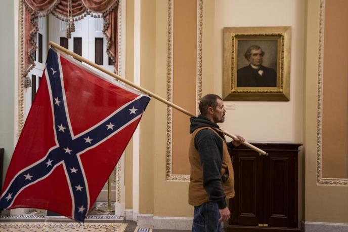 Vlasti SAD uhapsile su više muškaraca, uključujući jednog koji je prošle nedelje na američkom Kapitolu držao zastavu Konfederacije tokom nereda, saopštilo je juče američko Ministarstvo pravde.