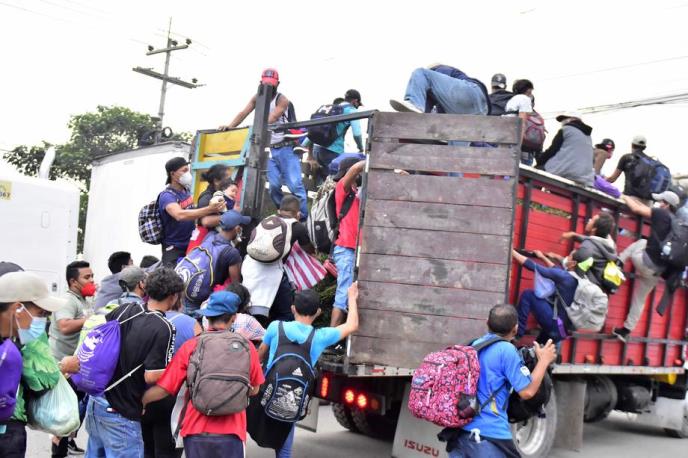 Čitave porodice, sa pospanom decom u naručju uputile su se rano jutros auto-putem prema gradu Agva Kalijente, nedaleko od granice sa Gvatemalom.