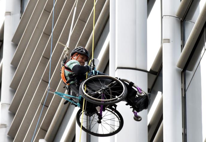 Nakon nesreće, nastavio je da se penje pričvršćujući svoja invalidska kolica na sistem za vuču.